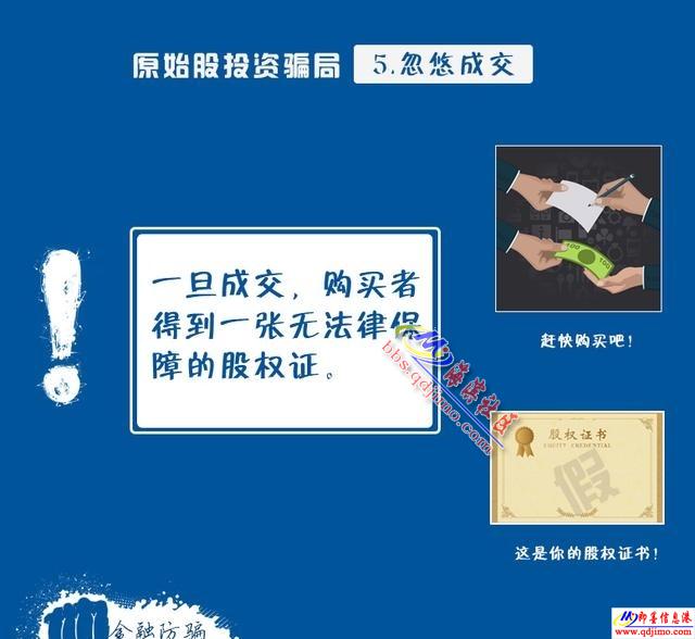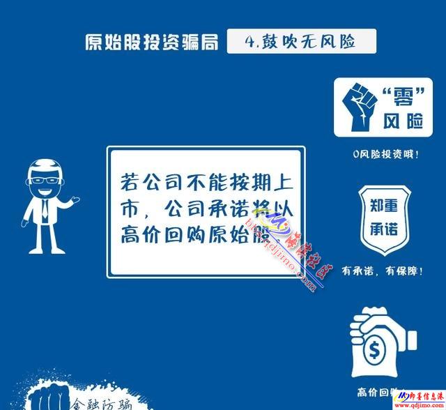 凡是以“零風(fēng)險(xiǎn)、高回報(bào)”為噱頭的原始股權(quán)出售,都是利用投資者一夜暴富的心理實(shí)施詐騙。