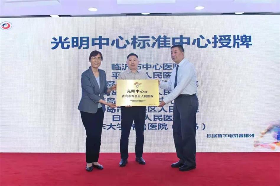 在山東第一醫(yī)科大學(xué)附屬青島眼科醫(yī)院光明指導(dǎo)中心啟動(dòng)會(huì)上,即墨區(qū)人民醫(yī)院眼科主任張道敬代表醫(yī)院接受“光明中心”授牌。