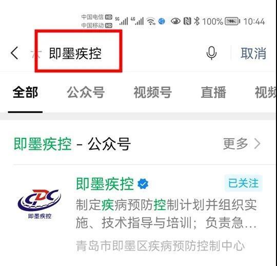 1、關(guān)注“即墨疾控”微信公眾號。