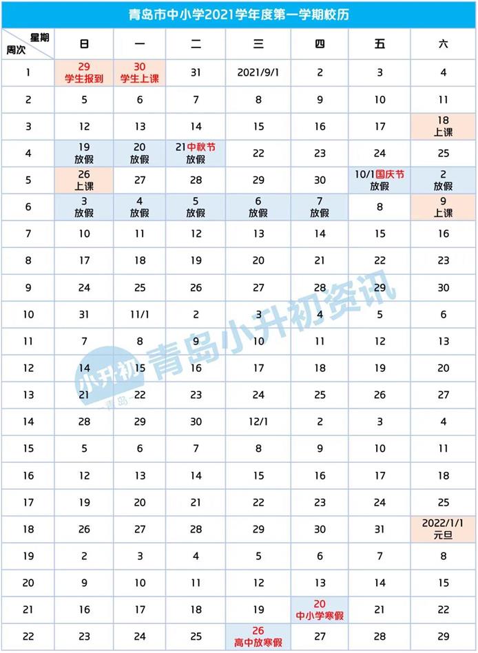 青島市義務(wù)教育階段中小學(xué)生2021-2022學(xué)年度第一學(xué)期周歷,快來了解新學(xué)期的時間安排!