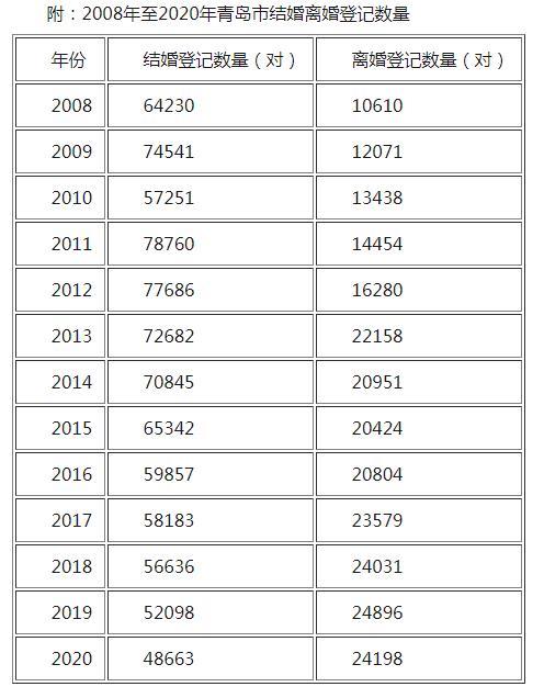 結(jié)婚登記數(shù)量十年連降,降幅達(dá)38% 記者從青島市民政局了解到,2021年1月1日至6月30日,青島市結(jié)婚登記數(shù)量為24609對(duì),這一數(shù)量比去年同期略有增多。不過,由于去年上半年疫情原因,對(duì)婚姻登記數(shù)量必然會(huì)造成一定影響,因此并不具有比較意義。而去年全年青島市結(jié)婚登記數(shù)量為48663對(duì),從2011年以來已連續(xù)十年下降。