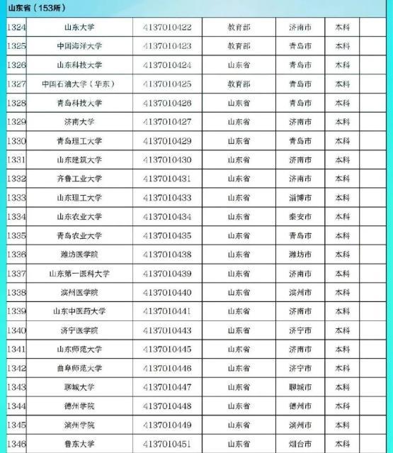 其中,山東高校有153所
