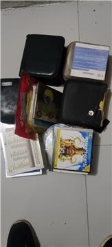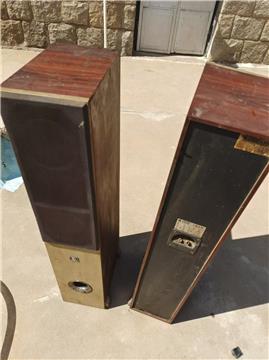 物品名稱及描述:工廠餐廳老供放一套:功放,大小音箱5個,大的1.2×0.36×0.26米2個,小的約30~45cm,正版歌曲等影碟約200個