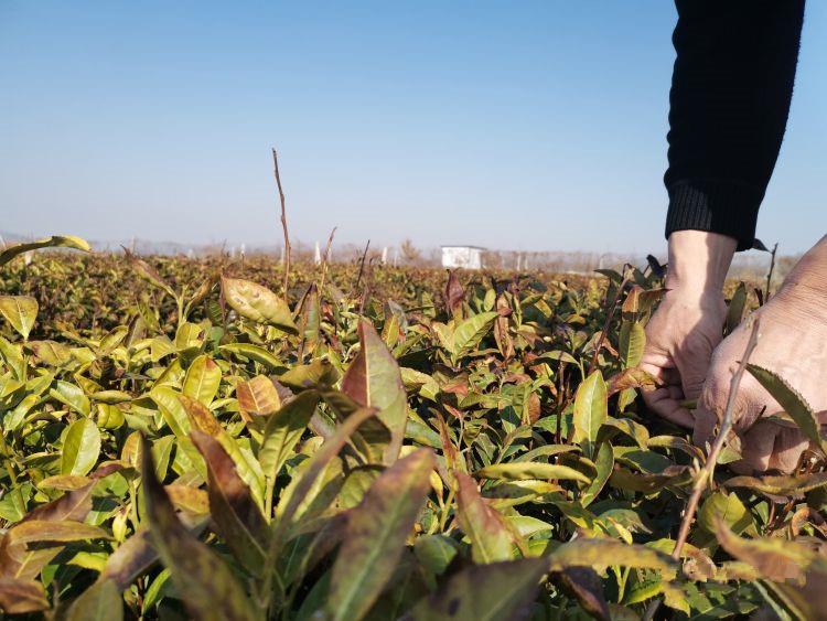 隆潤(rùn)茶園管理人孫友安正在悉心查看越冬茶樹的葉片