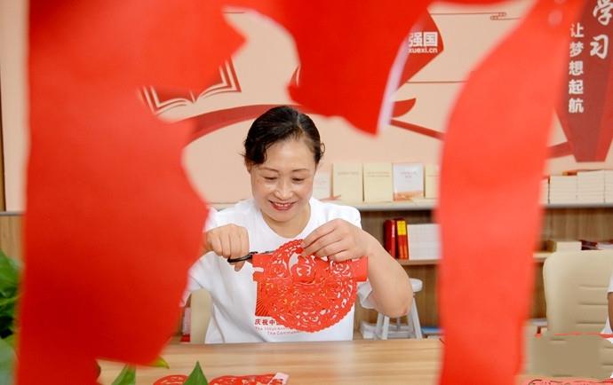 巧手剪紙心向黨 青島即墨區(qū)村民將對黨和國家的祝福融入剪紙作品