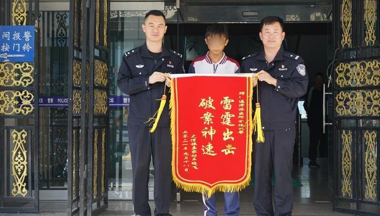 10月12日,青島市即墨區(qū)大信街道王先生將一面帶有“雷霆出擊 破案神速”八個(gè)大字的鮮紅錦旗送到了通濟(jì)派出所辦案民警手中,以此來表達(dá)自己的感謝之情。