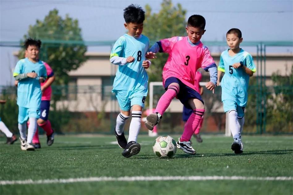 即墨區(qū)龍山街道團(tuán)彪莊村的小學(xué)生在足球場(chǎng)踢球。