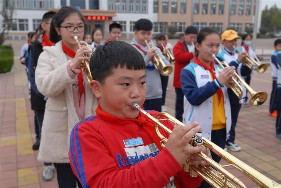 ▲10月26日,山東青島市即墨區(qū)環(huán)秀中心小學(xué)的學(xué)生樂隊(duì)在練習(xí)長號(hào)。