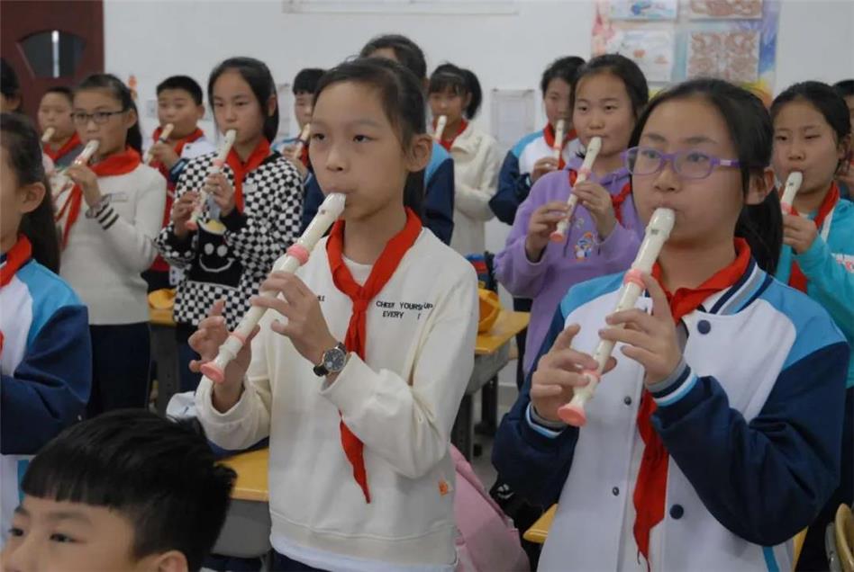 ▲10月26日,山東青島市即墨區(qū)環(huán)秀中心小學(xué)的學(xué)生在吹奏豎笛。