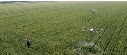 5 月 19 日,走進(jìn)山東省青島市即墨區(qū)靈山街道付辛村,連片的小麥長(zhǎng)勢(shì)喜人,田野一片蔥綠,一架架無人機(jī)在麥田上空低空勻速飛行,忙碌穿梭在縱橫交錯(cuò)的田野間,構(gòu)成了一道亮麗的風(fēng)景線。