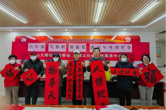為營造安定和諧、歡樂祥和的節(jié)日氛圍,大力弘揚中華優(yōu)秀傳統(tǒng)文化,1月13日,即墨區(qū)鰲山衛(wèi)街道山大路社區(qū)組織轄區(qū)書法愛好者開展了“小年到 寫春聯(lián) 剪窗花 濃濃年味迎新春”活動,通過寫春聯(lián)、送春聯(lián)、剪窗花的形式,向社區(qū)居民送上節(jié)日祝福。