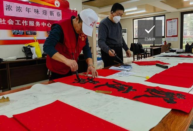 活動現(xiàn)場熱鬧非凡,國立社工和志愿者盡情揮毫潑墨,多種書體各顯神韻,一幅幅寓意吉祥的春聯(lián),一張張喜氣洋洋的“!弊,化作最真摯的新春祝福送到居民手中,讓大家提前感受到濃濃的年味。