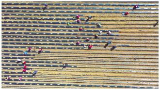 “覆膜種植的好處,一個是防草,一個是保持濕度,覆膜后一畝地產(chǎn)量提升20%,大約1000斤左右!敝兴幉姆N植基地種植管理部經(jīng)理王濤說。