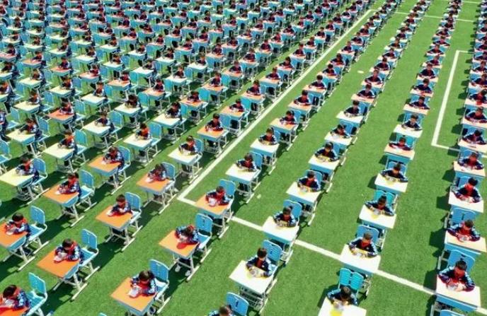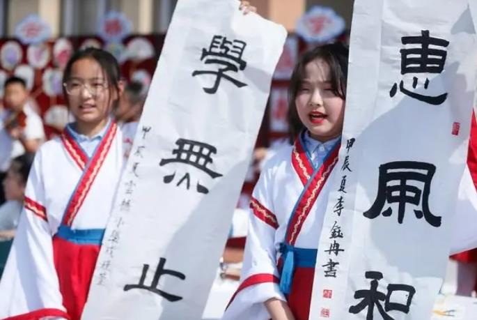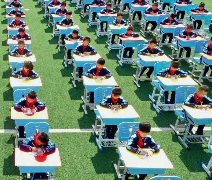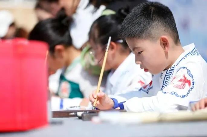 校園賽書法,即墨千名小學生操場“擺擂臺”