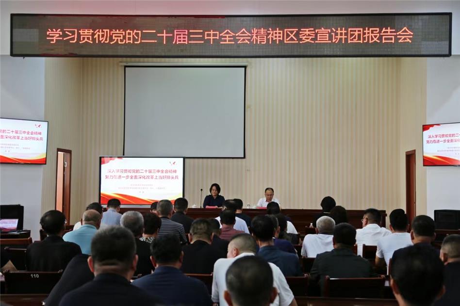 宣講活動在度假區(qū)的小禮堂舉行。高娃局長以深入淺出的語言、生動詳實的案例,對黨的二十屆三中全會精神進(jìn)行了全面解讀。她強(qiáng)調(diào),黨的二十屆三中全會為全面深化改革指明了方向,我們要深刻領(lǐng)會全會精神,以實際行動在進(jìn)一步全面深化改革中勇當(dāng)排頭兵。度假區(qū)全體機(jī)關(guān)干部及社區(qū)村莊黨支部書記認(rèn)真聆聽,不時記錄下重要內(nèi)容。大家紛紛表示,通過這次宣講,對黨的二十屆三中全會精神有了更深刻的理解,也更加明確了自己在全面深化改革中的責(zé)任與使命。