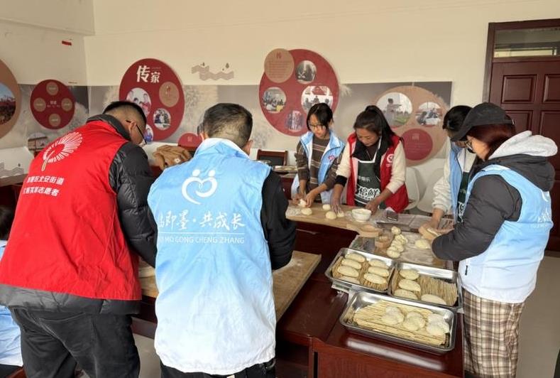 活動當天,協(xié)會藝術(shù)顧問們揮毫潑墨,用飽含深情的筆觸,為殘疾人書寫了一副副充滿祝福的福字和新春對聯(lián)。村莊志愿者和家屬們也不甘落后,他們自己和面,發(fā)酵、造型,在大家的共同努力下,一個個栩栩如生的魚花、元寶等多種形狀的花饃,在男女老少的靈巧雙手下,躍然呈現(xiàn)于案板之上。