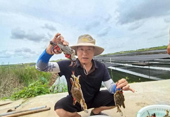 在丁字灣另一片蟹田,42歲的養(yǎng)殖戶鄭剛也迎來了豐收的忙碌。他采用蟹蝦混養(yǎng)模式的上百畝蟹塘里,起獲的梭子蟹平均半斤一只,活力十足!敖衲觌m然氣溫偏高,但收成沒受影響,畝產穩(wěn)穩(wěn)200斤沒問題!”鄭剛介紹。