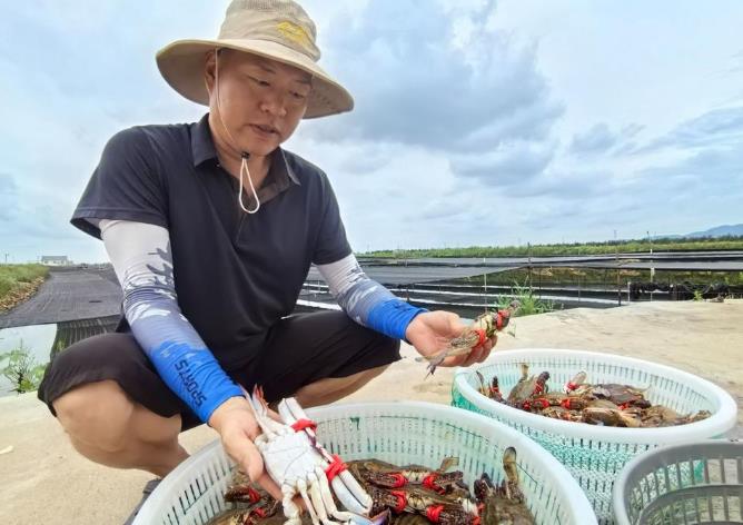 雖然距離伏季休漁結束還有一個月,但青島市即墨區(qū)田橫鎮(zhèn)養(yǎng)殖梭子蟹的豐收景象已然提前上演。30日上午,在田橫鎮(zhèn)營子村的蟹田中,呈現出一派繁忙的捕撈景象。一筐筐青殼白肚的梭子蟹剛離水,就被守候的冷鏈車迅速運往各地市場!敖衲晷纷觽頭大,味道鮮美!”56歲的養(yǎng)殖戶楊為華承包了近百畝蟹田,深知時機寶貴!斑@批是4月初精心投放的蟹苗,經過4個月生長,終于在8月前達到上市規(guī)格!