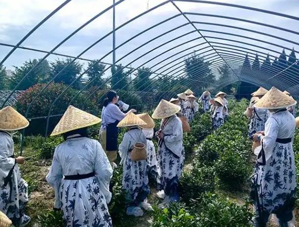 當(dāng)講解環(huán)節(jié)結(jié)束,孩子們挎起精巧的竹編茶簍,即刻化身“小小茶農(nóng)”。他們穿梭在錯(cuò)落的茶壟間,漢服的水墨紋樣與翠綠茶芽相映成趣,竹笠的編織紋路在陽光下泛著質(zhì)樸光澤。彎腰、提指、采摘,一系列動(dòng)作雖稍顯生疏,卻滿是認(rèn)真。有的孩子還互相交流采摘心得,“你看這芽頭多飽滿”“原來采茶要這么輕才不會(huì)傷了茶樹”,田園間的歡聲笑語與茶葉的清香交織成獨(dú)特的研學(xué)樂章。