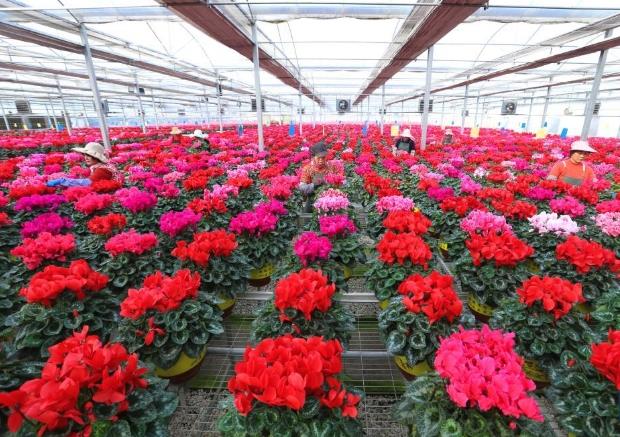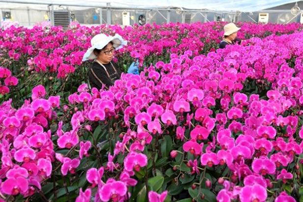 1月25日,花農(nóng)在青島市即墨區(qū)靈山花卉文化產(chǎn)業(yè)園管護(hù)花卉。 春節(jié)臨近,山東省青島市即墨區(qū)靈山花卉文化產(chǎn)業(yè)園的年宵花迎來(lái)生產(chǎn)和銷售旺季,花卉大棚內(nèi)的蝴蝶蘭、長(zhǎng)壽花、仙客來(lái)等競(jìng)相綻放,花農(nóng)們按照訂單外運(yùn)各類花卉,供應(yīng)節(jié)日市場(chǎng)。 新華社發(fā)(梁孝鵬攝)
