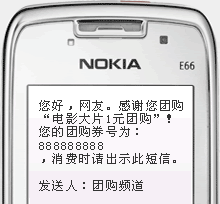 2. 發(fā)送手機(jī)短信可直接把團(tuán)購券發(fā)送到手機(jī)